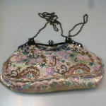 深藍玫瑰壓紋皮革斜背包/手拿包