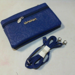 深藍玫瑰壓紋皮革斜背包/手拿包